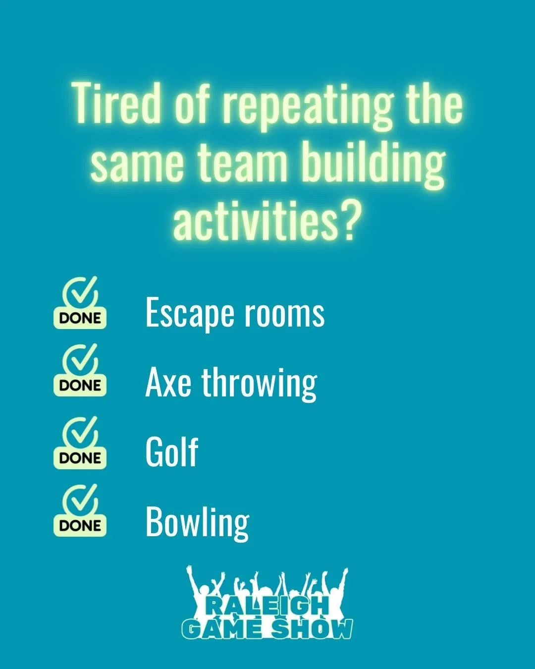 At Raleigh Game Show, we bring the excitement of classic TV game shows to life with a one-of-a-kind, live-hosted, interactive experience your group will never forget